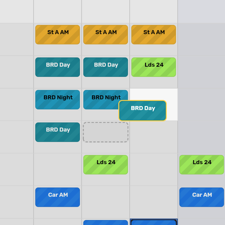 - Click into the selected area to add that shift to all those days at once.