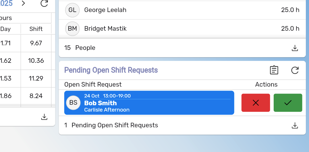 - Shift Swaps – Pending widget now shows all swaps so nothing is missed.