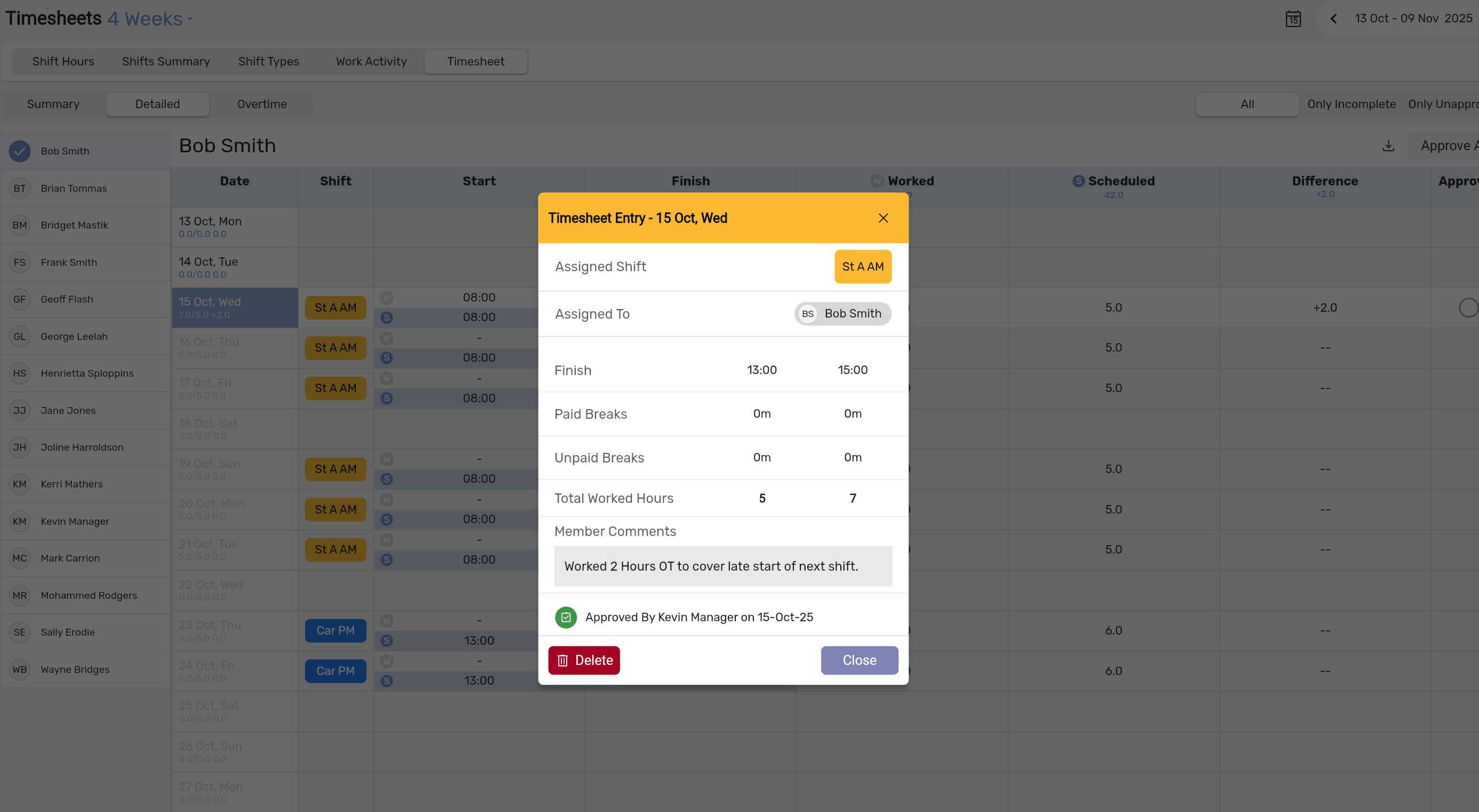- Select a shift from the shift picker