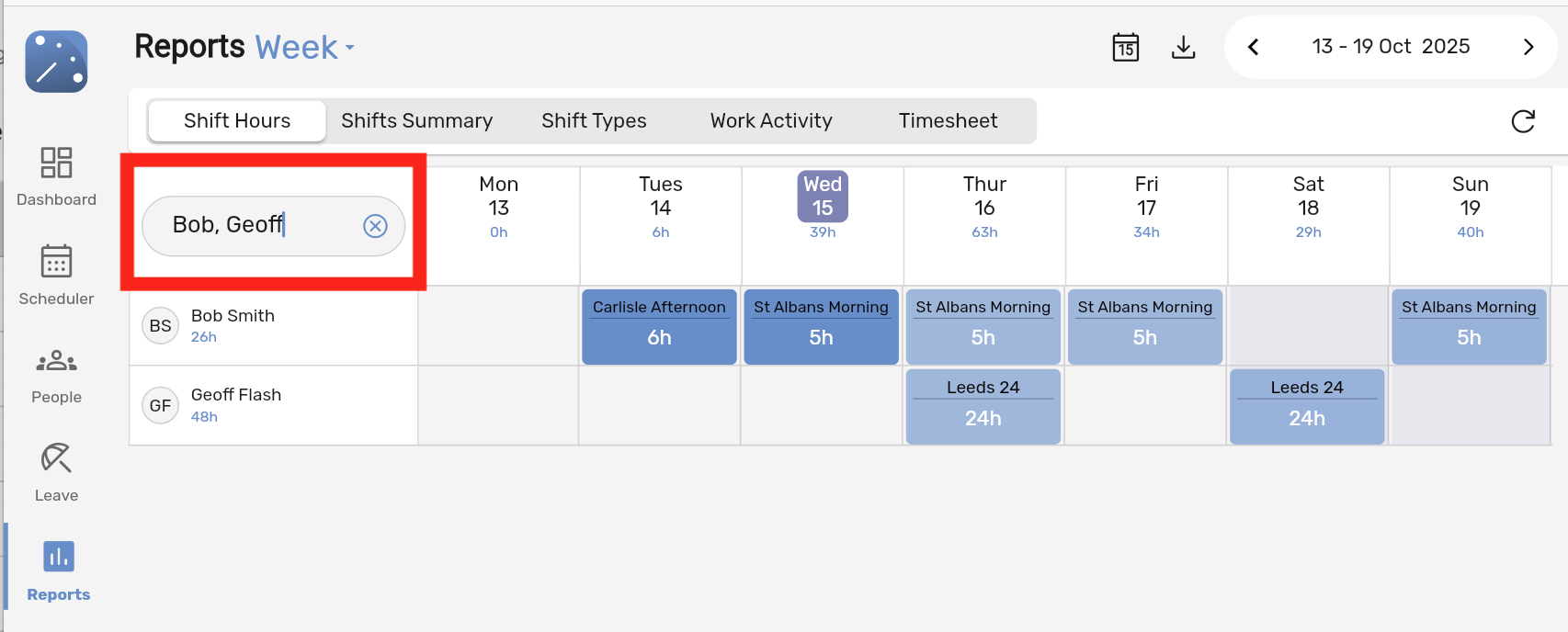 You can now search for multiple people at once (eg. Chris, Matt etc.) in the dashboard, reports, scheduler and leave tabs. Simple, powerful and time-saving.